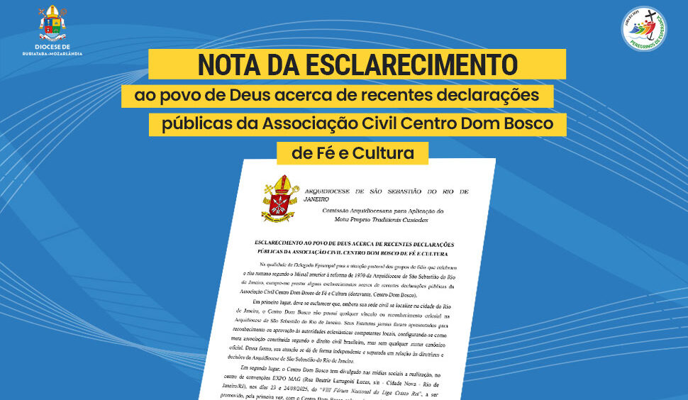 Na qualidade de Delegado Episcopal para a atenção pastoral dos grupos de fiéis que celebram o rito romano segundo o Missal anterior à reforma de 1970 da Arquidiocese de São Sebastião do Rio de Janeiro, cumpre-me prestar alguns esclarecimentos acerca de recentes declarações públicas da Associação Civil Centro Dom Bosco de Fé e Cultura (doravante, Centro Dom Bosco).
