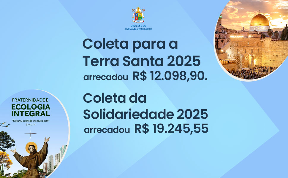 A Diocese de Rubiataba-Mozarlândia divulga o resultado da Coleta para a Terra Santa e da Coleta da Solidariedade 2025. A